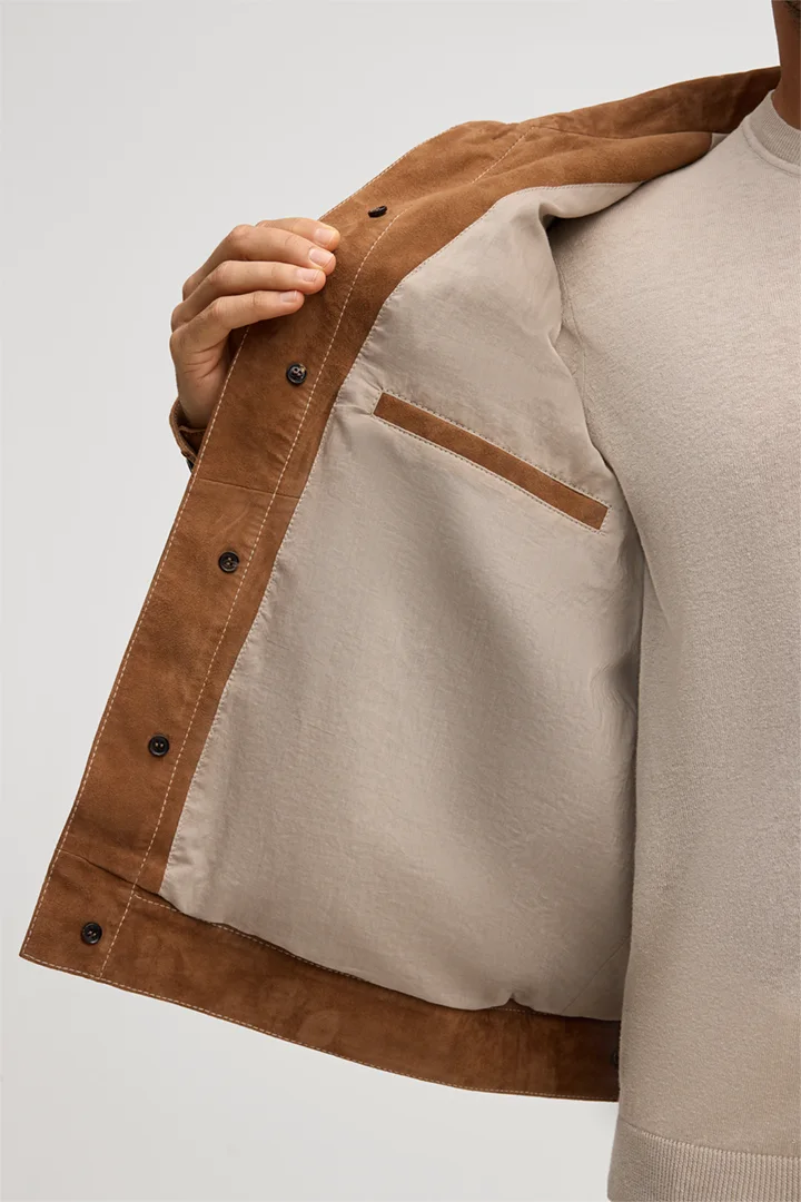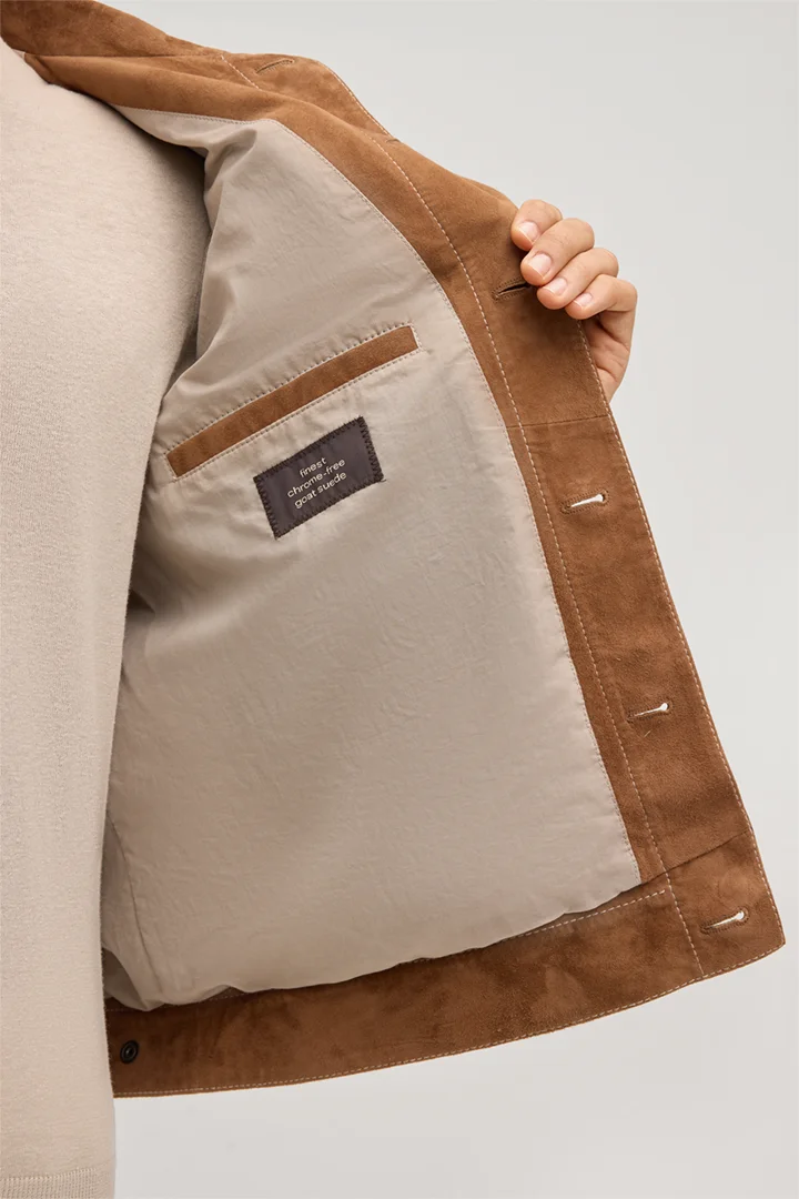 Luca goat suede shirt jacket in camel
