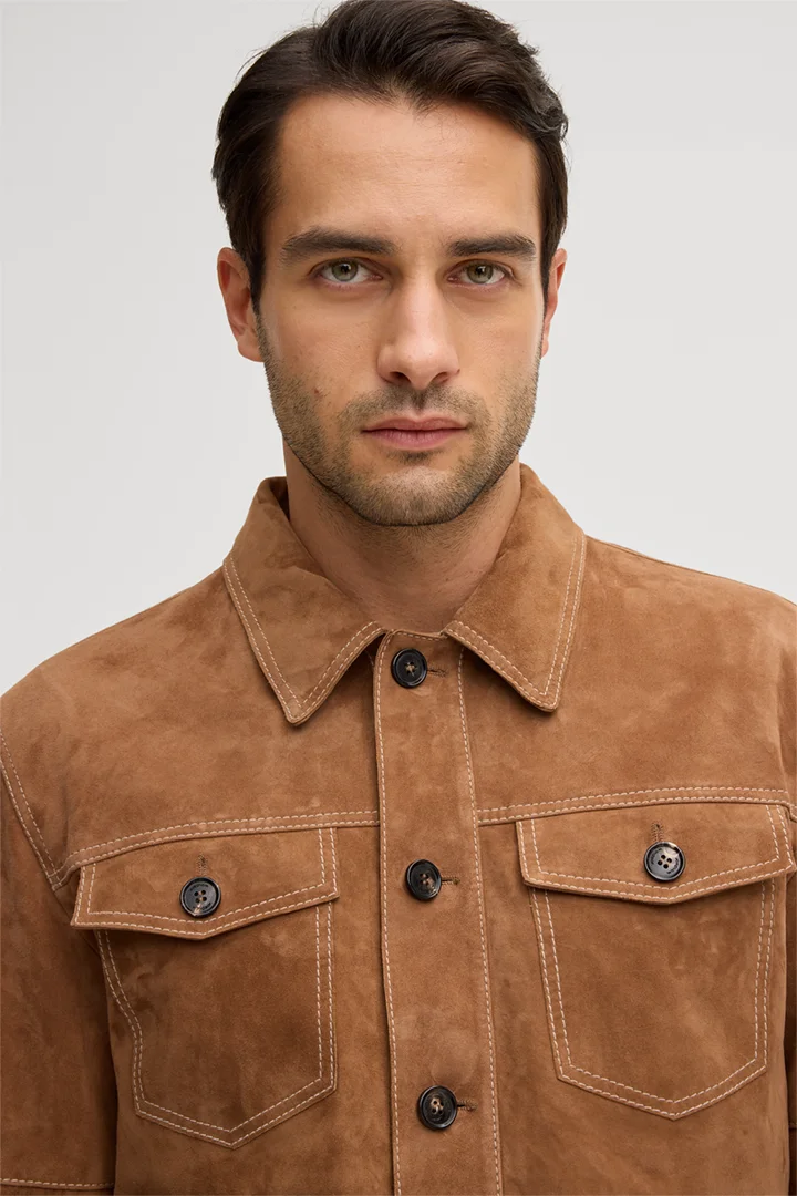 windsor. presents the product Luca goat suede shirt jacket in camel from the category Jackets & coats