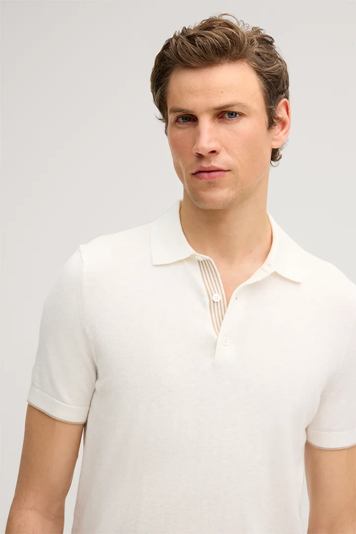 Cashmilo Cotton Polo Shirt with Cashmere and Silk in Ecru