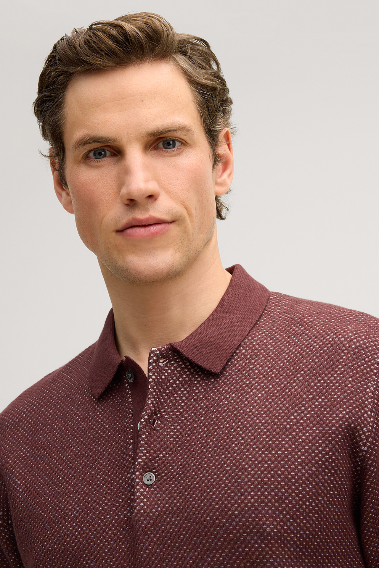 windsor. presents the product Cashmilo Cotton Polo Shirt with Cashmere and Silk in Textured Bordeaux Red from the category T-shirts & Polo shirts
