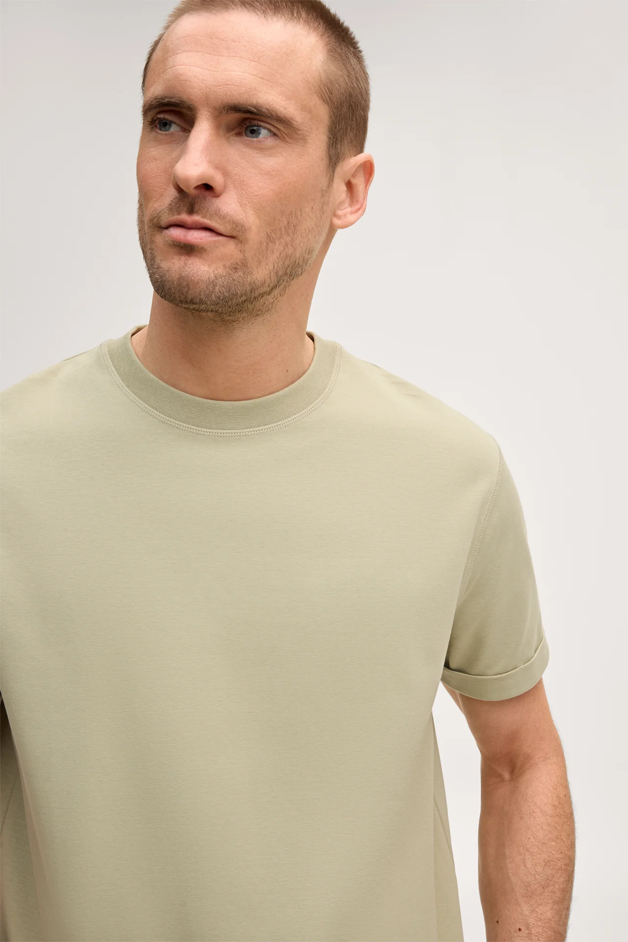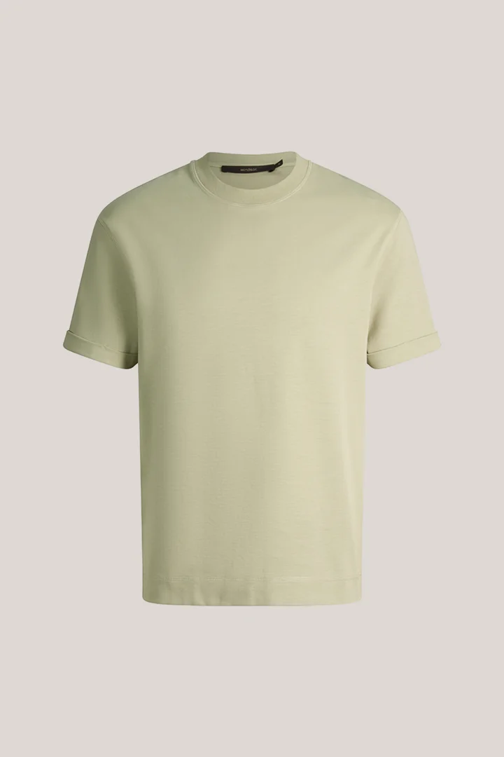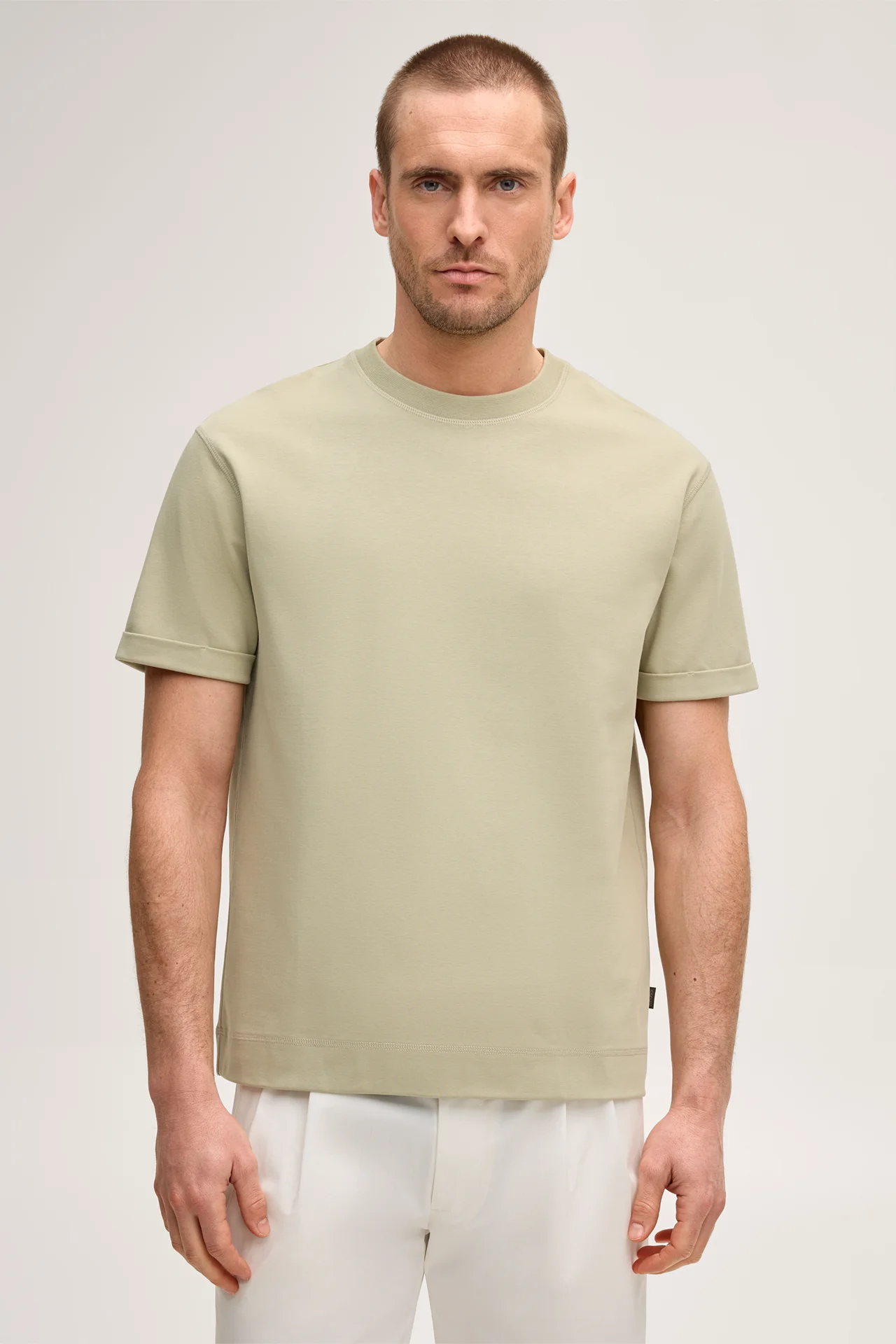 The stylish look of the Sivo T-shirt is characterised by its densely structured cotton jersey. Fixed cuffs give it a modern accent. The loose cut ensures a relaxed silhouette. The shirt is the ideal all-rounder for every season and goes well with jeans, chinos and summer outfits.