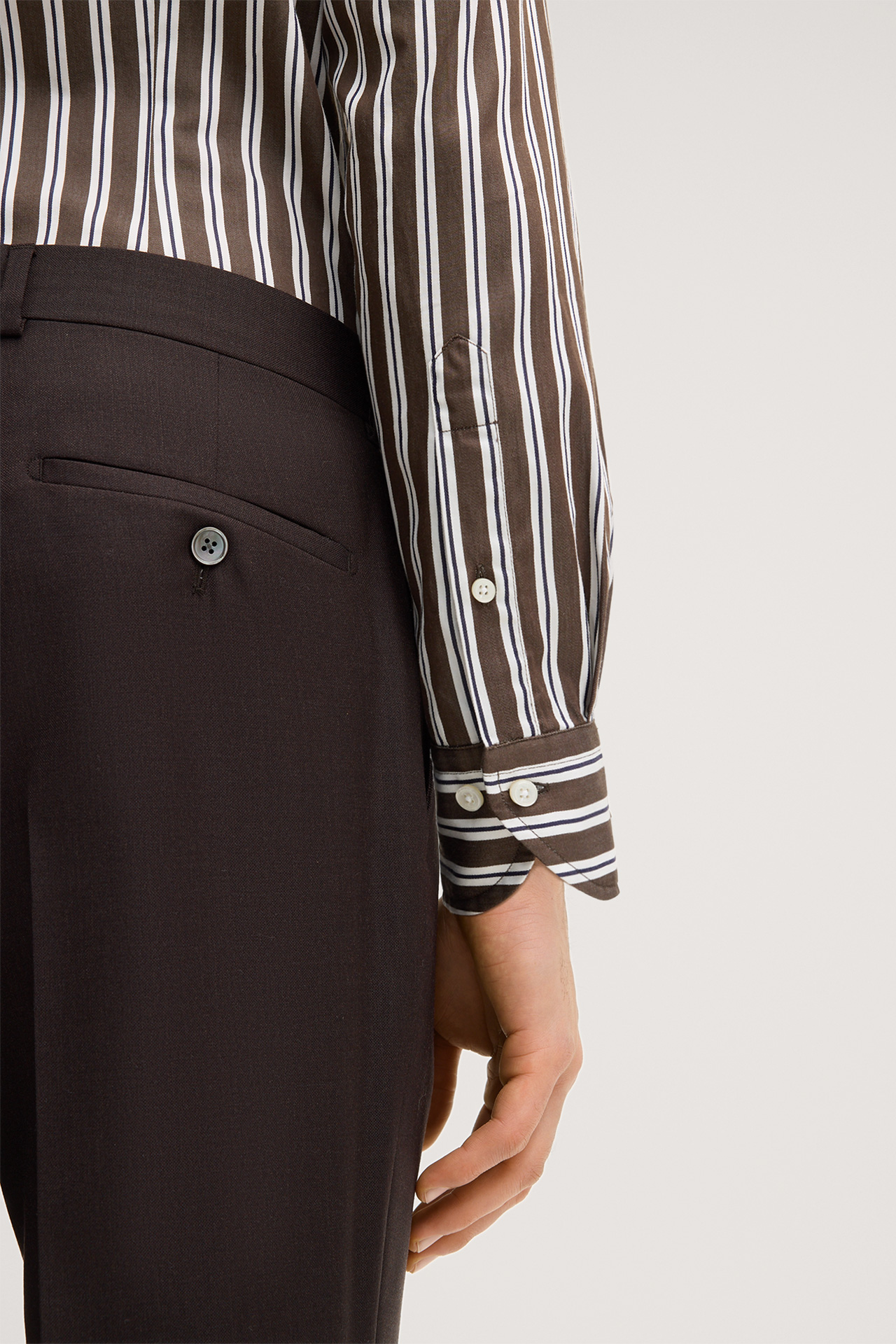 Lano cotton shirt in brown and white stripes