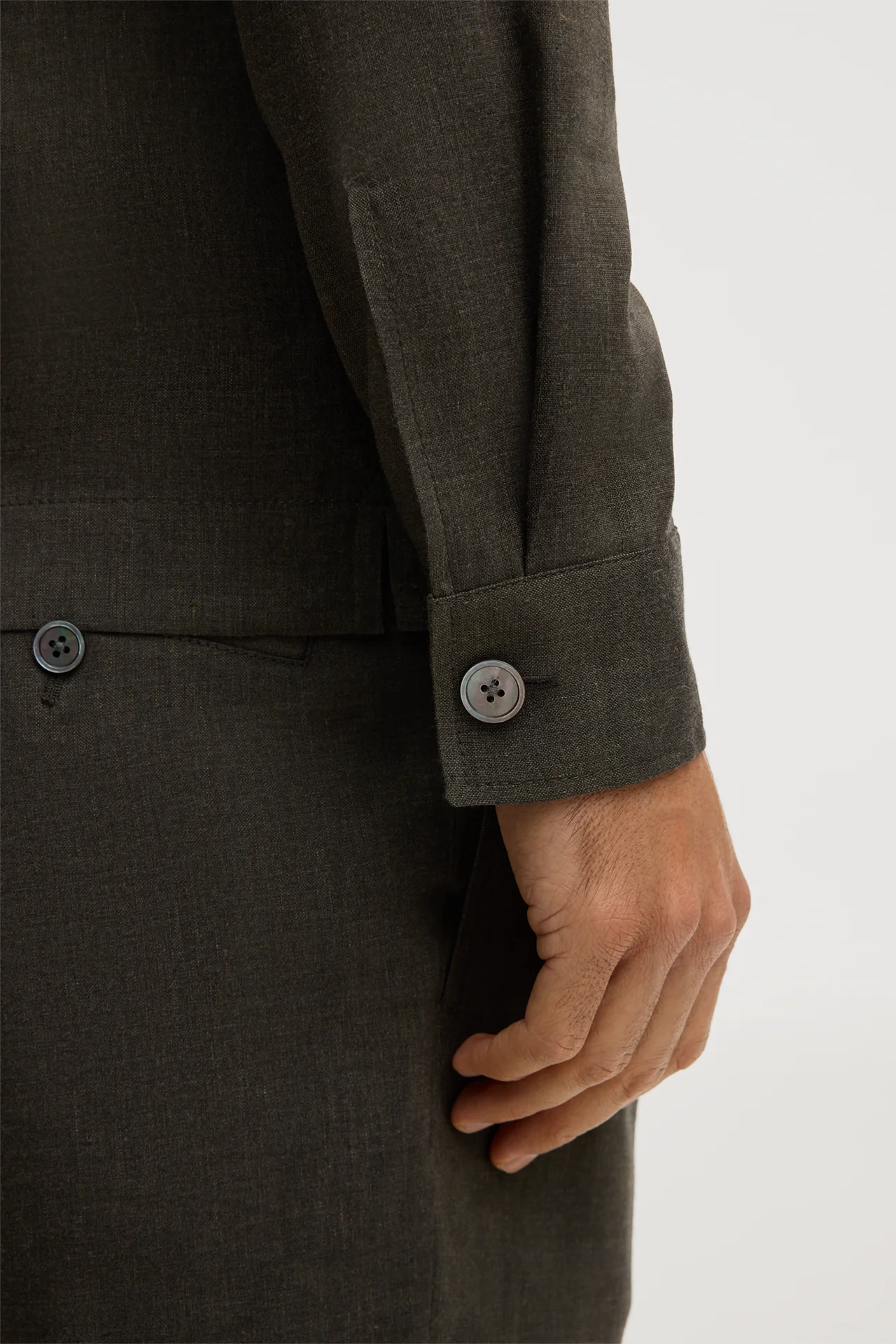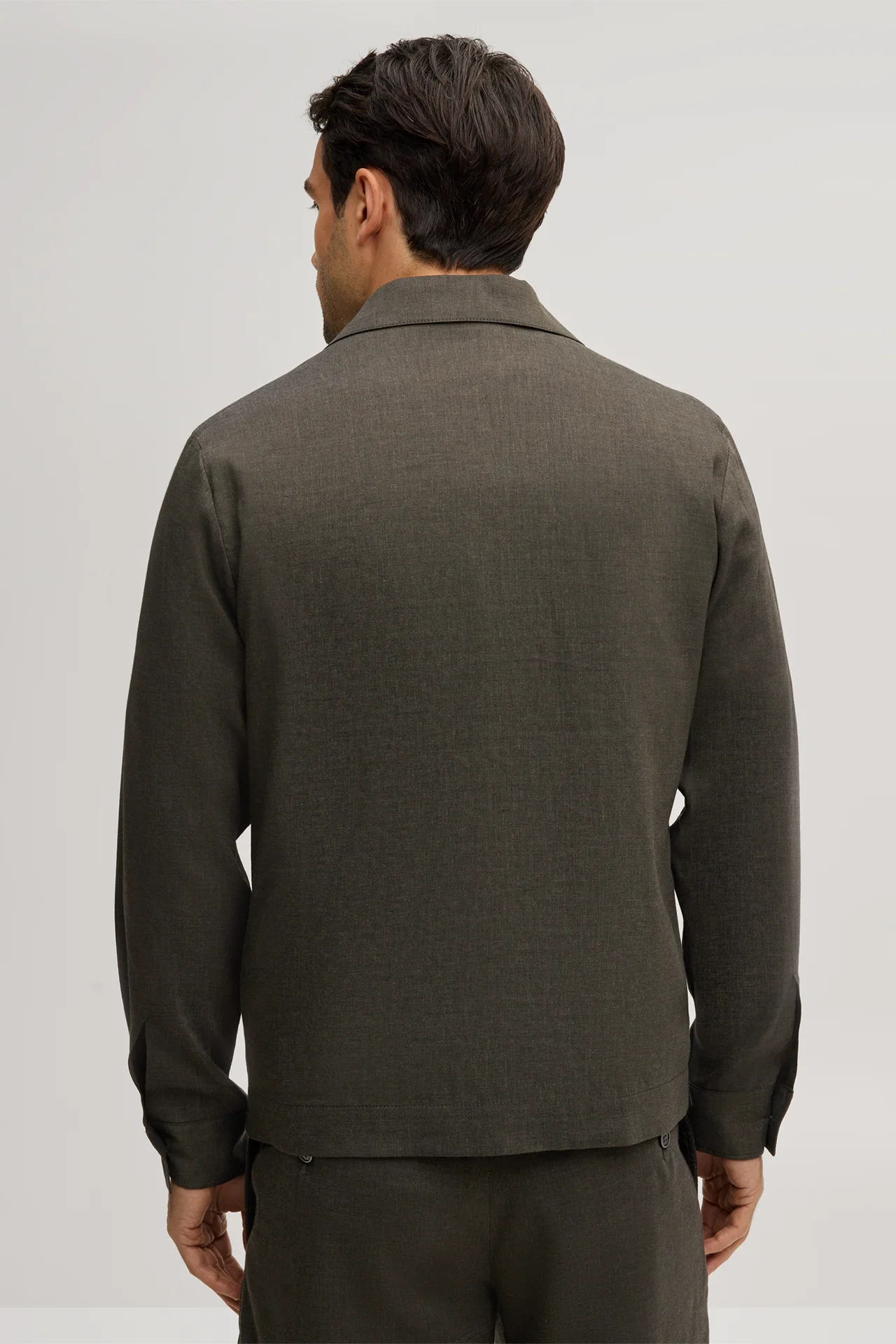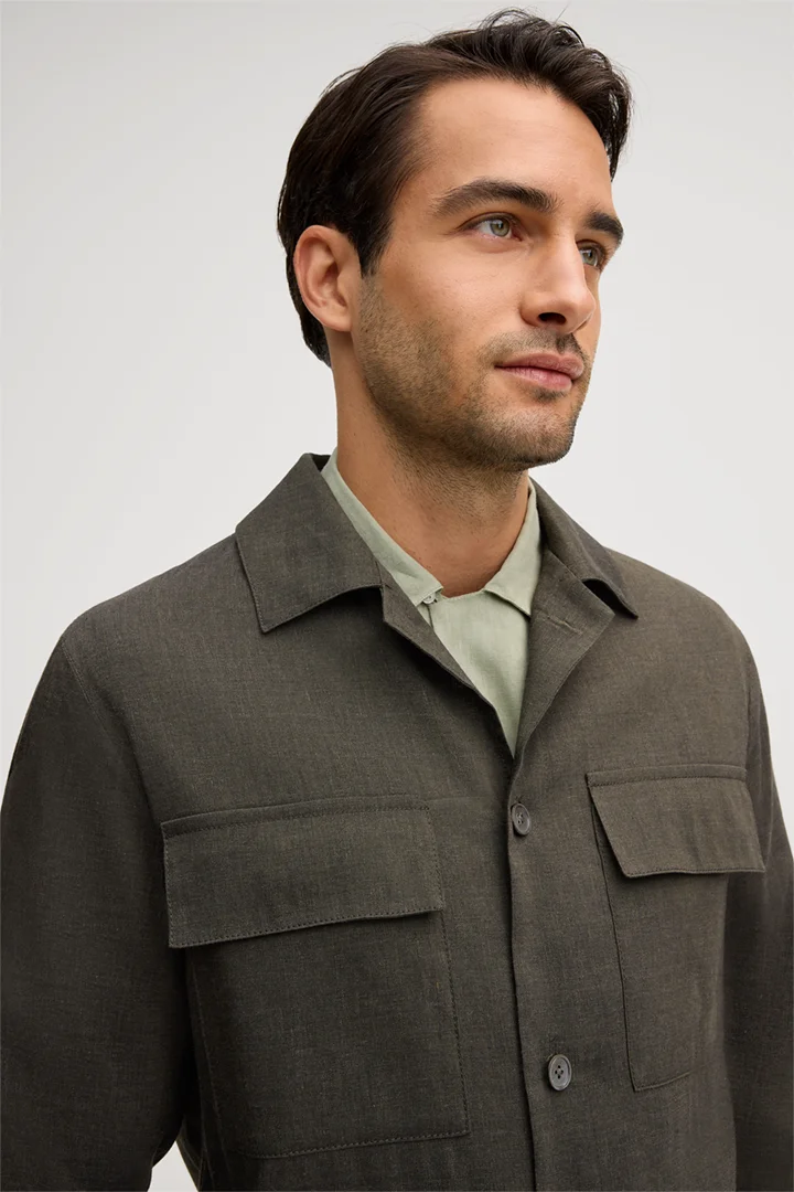 Linen blend modular overshirt Lavoro with wool in dark green