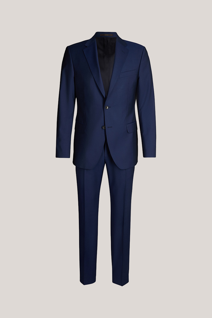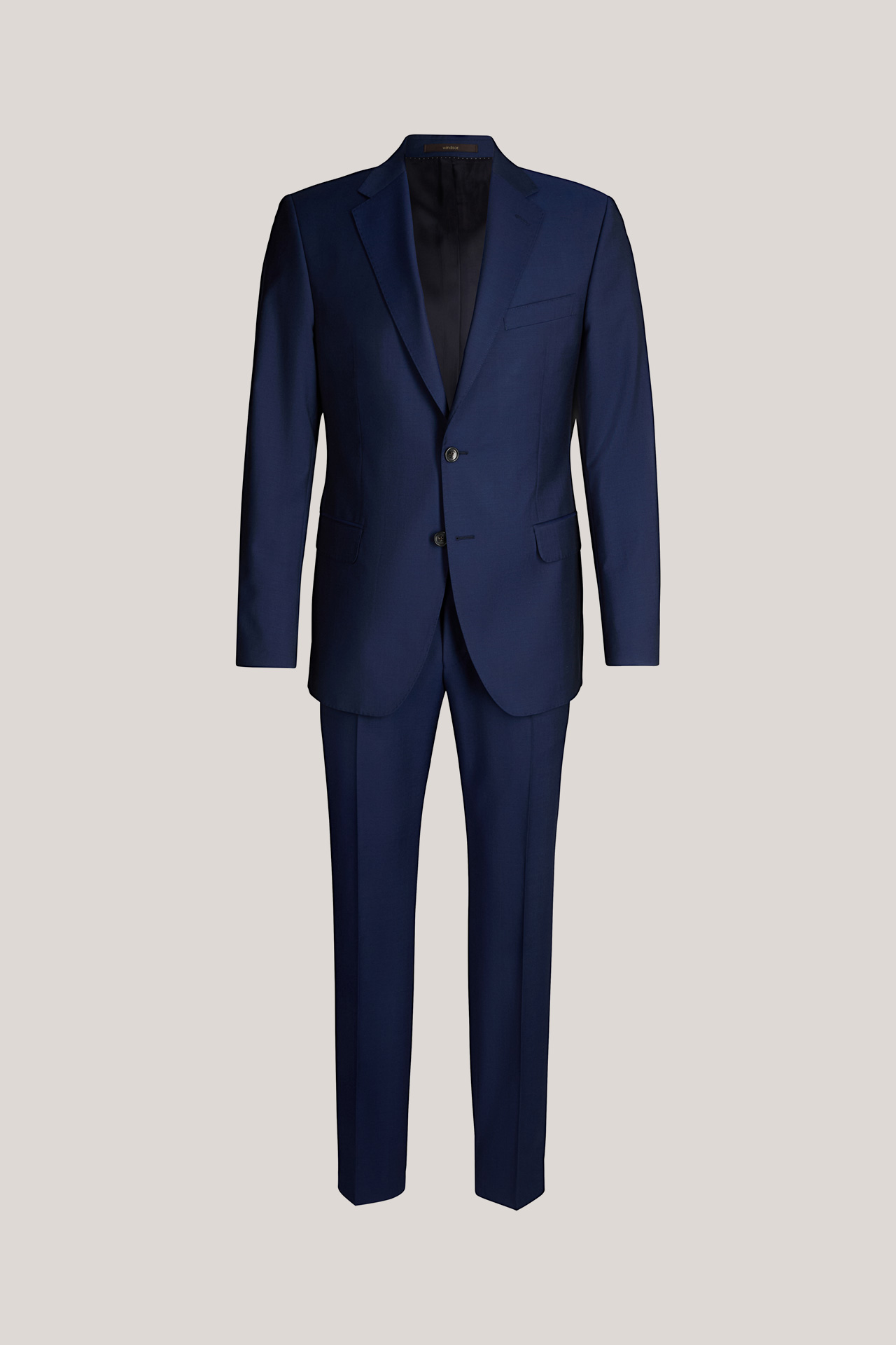 The Sera-Sole suit, made of pure virgin wool with a pleasantly lightweight viscose lining, makes an elegant companion for any occasion. The jacket flaunts a classic lapel, flap pockets, and back vents, while the suit trousers are stylishly accentuated with pressed creases and buttoned back welt pockets. The concealed hook-and-zip fastening complements these trousers in a shaped fit.