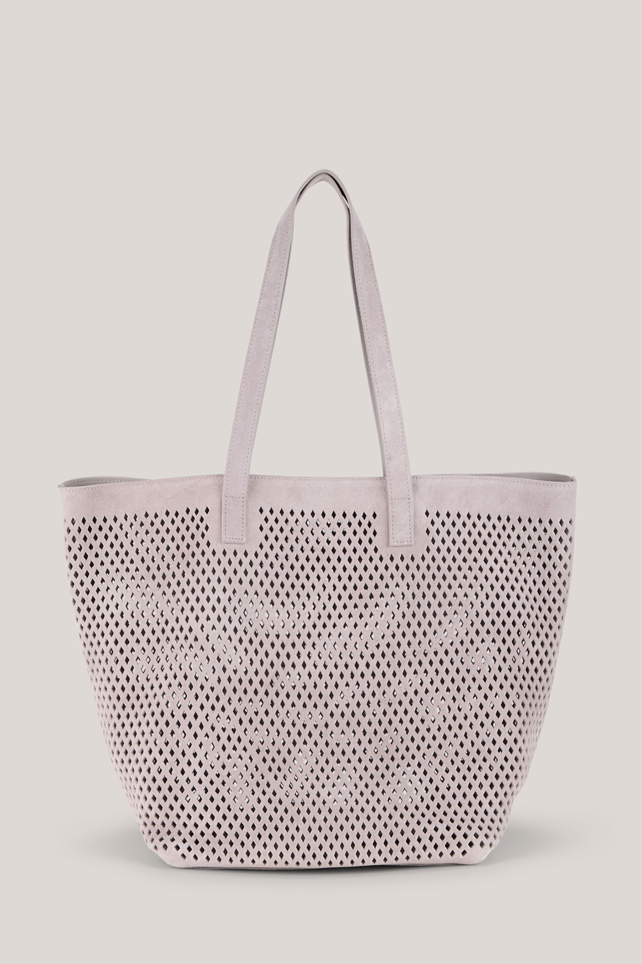 A convincing choice for versatile looks: the shopper made of luxurious suede boasts a modern perforated diamond look with a slightly sheer effect. A zip clutch in pure suede, typical of the brand, provides a comfortable finish. The accessory is fitted with a small carabiner clasp and is also ideal as an elegant item for the evening.
