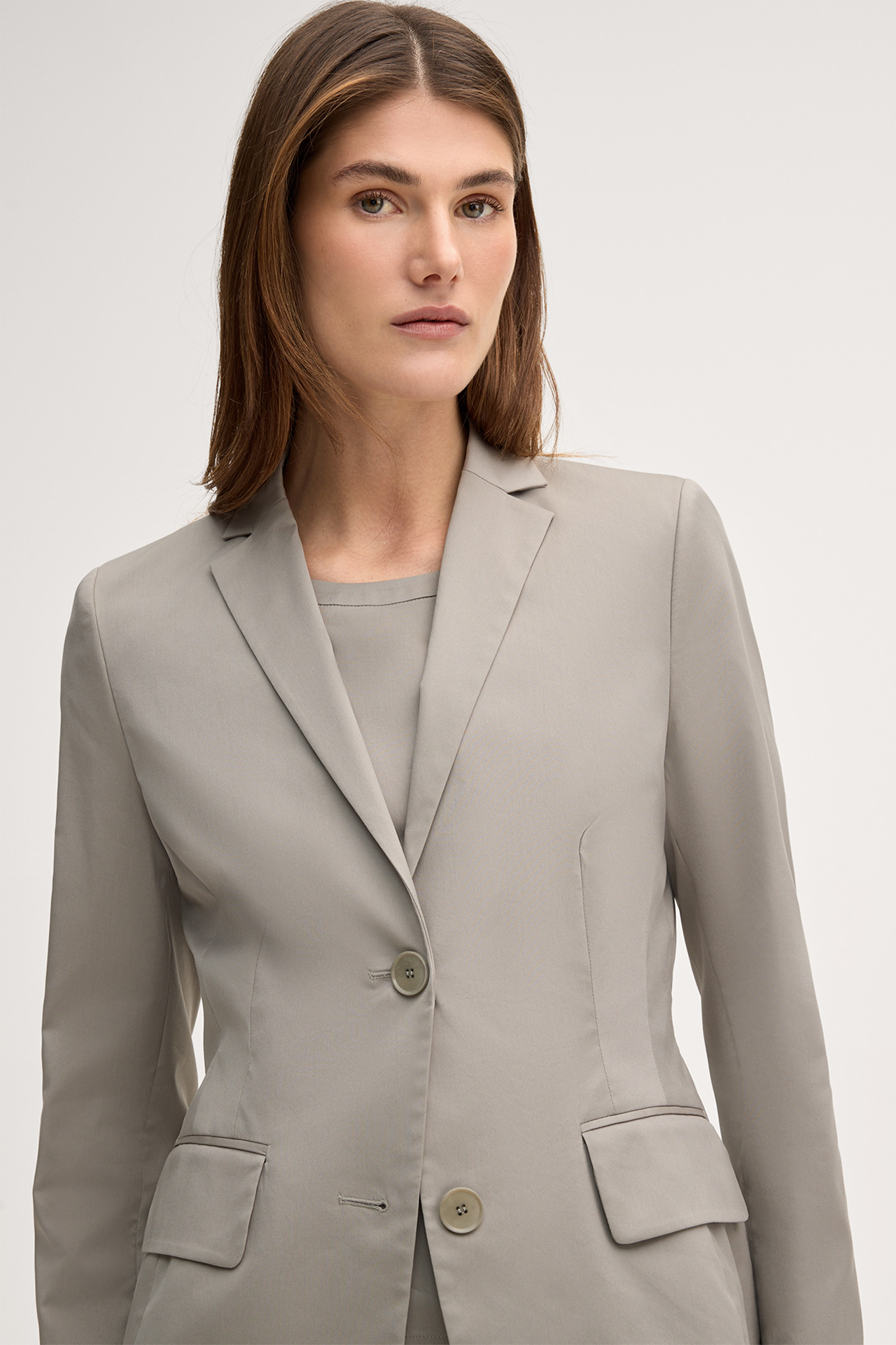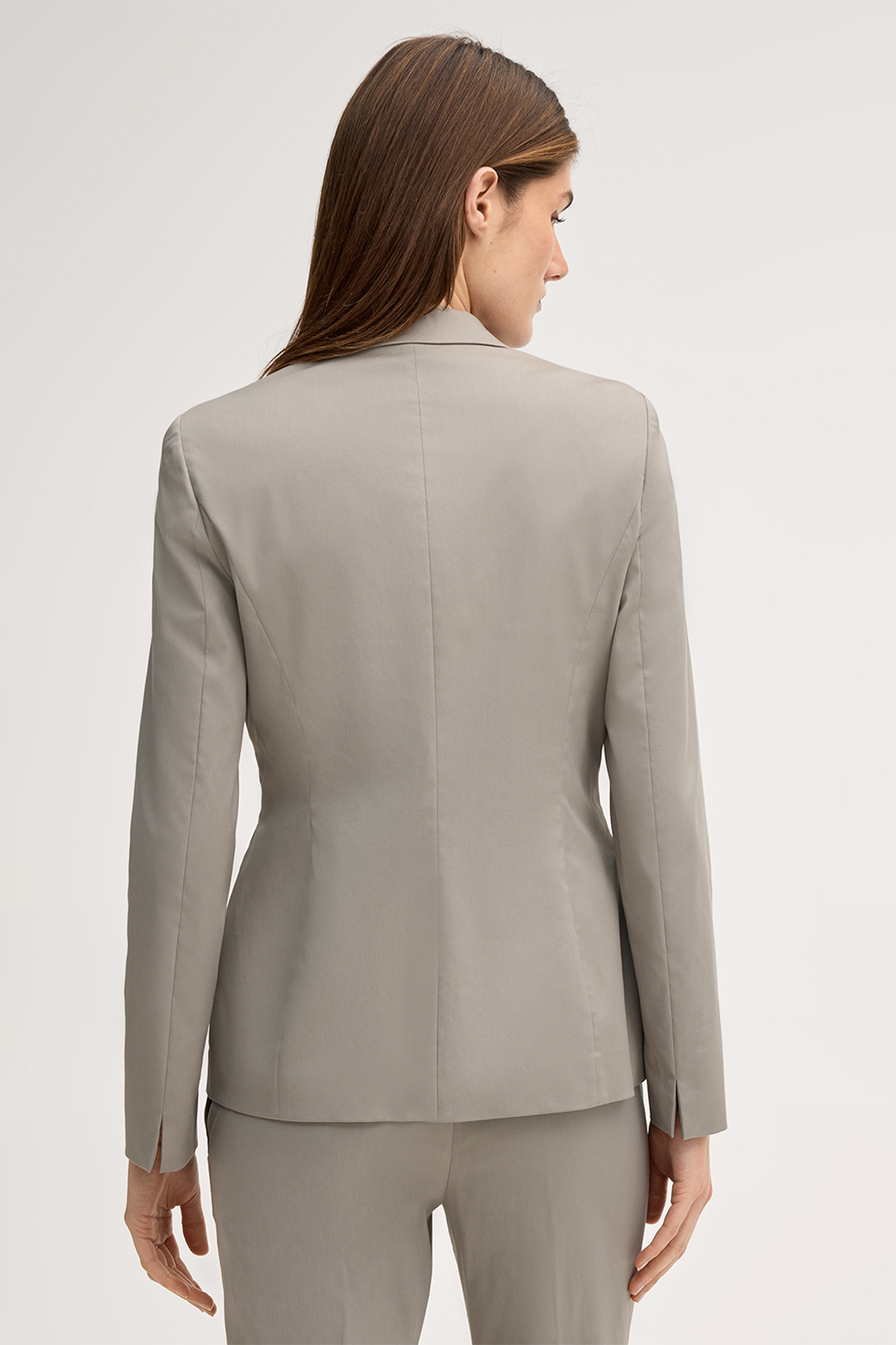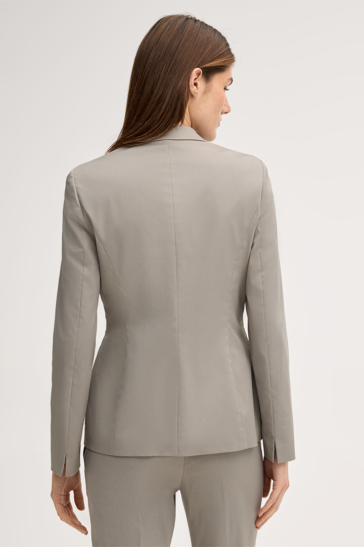 With its feminine silhouette, peak lapel collar and shaping shoulders, this stretch cotton blazer excels as a timeless stylish essential. The model is perfect for business, formal occasions and festive events. Flap pockets and the two-button fastening add a sophisticated touch, rounded off by long sleeves and fine cuffs. A flowing lining takes comfort to a new level.