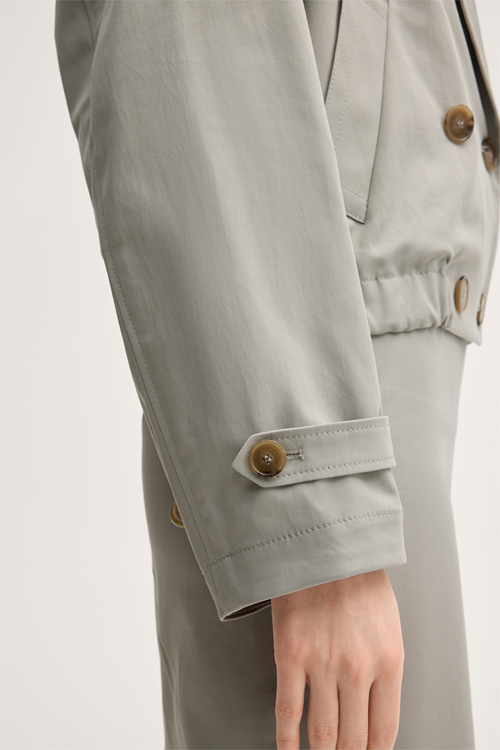 Double cotton stretch trench blazer jacket in greige
