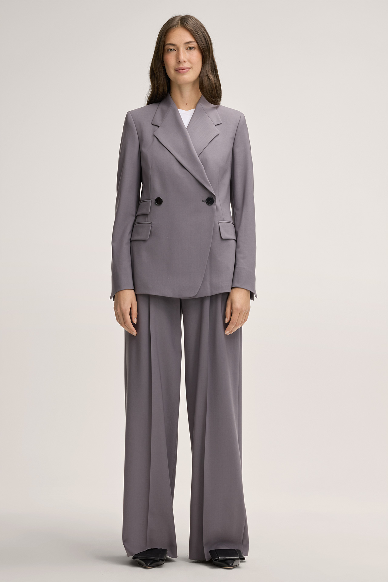 In stretchy Italian virgin wool and with an asymmetric button fastening, this blazer stands out as a modern piece - perfect when paired with the matching suit trousers. Slits at the back take comfort to the next level, while piped flap pockets add a harmonious accent.