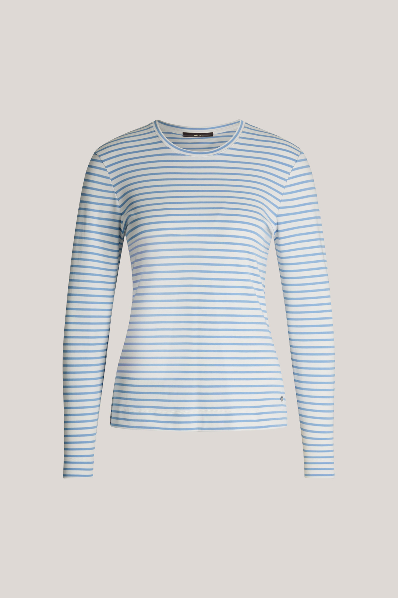 Cotton Interlock Long-sleeved Shirt in Blue/White Stripes