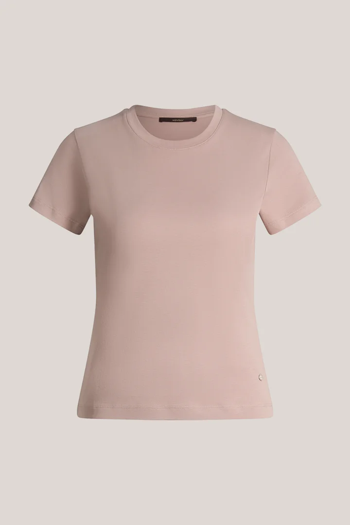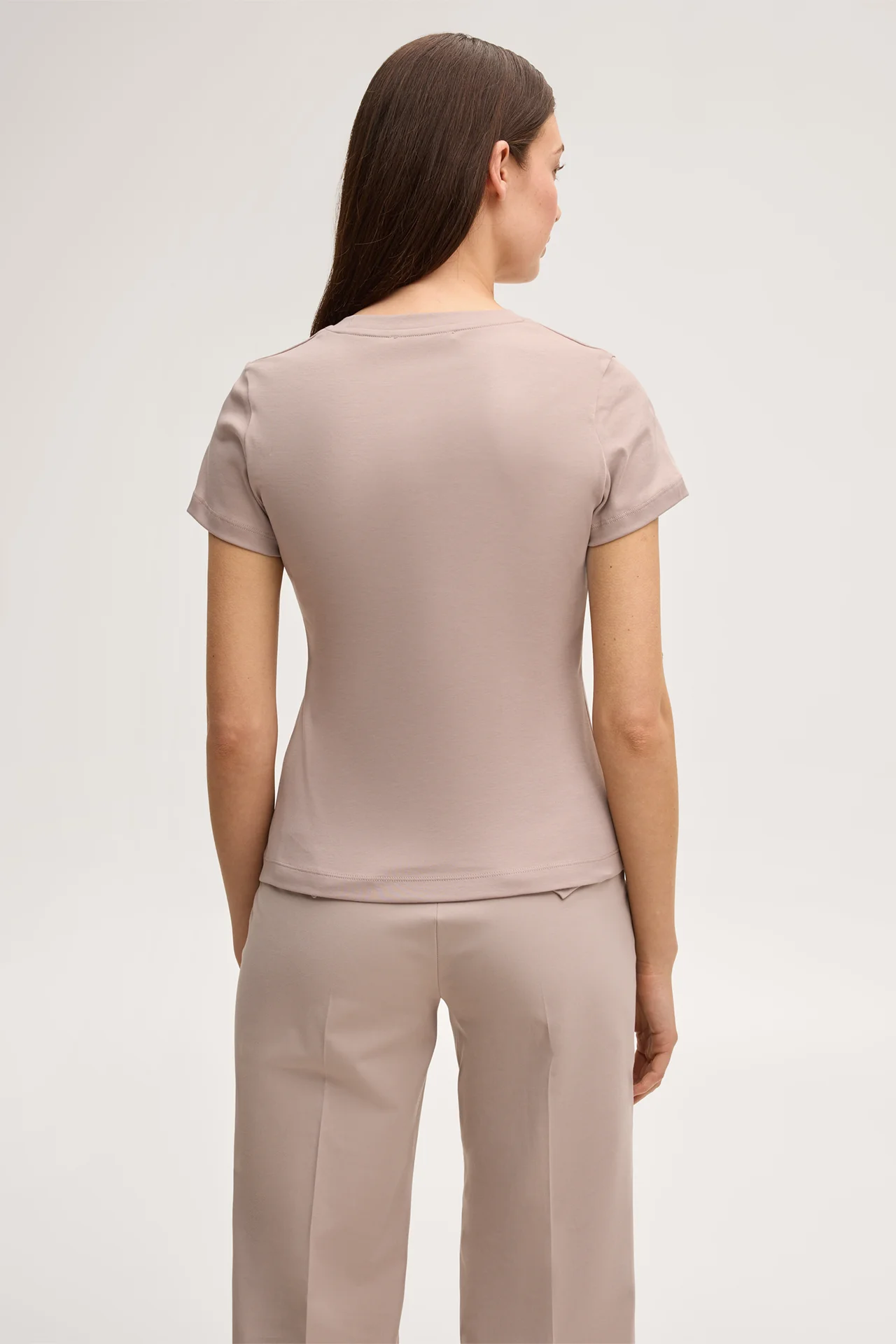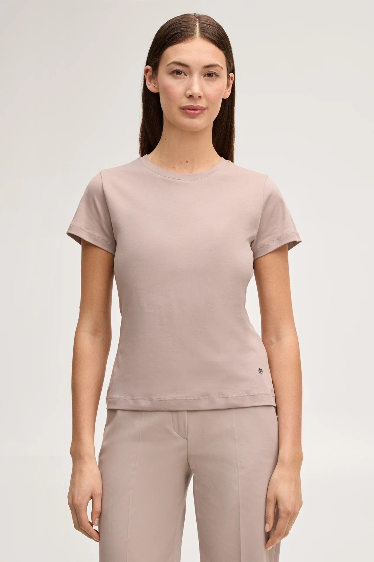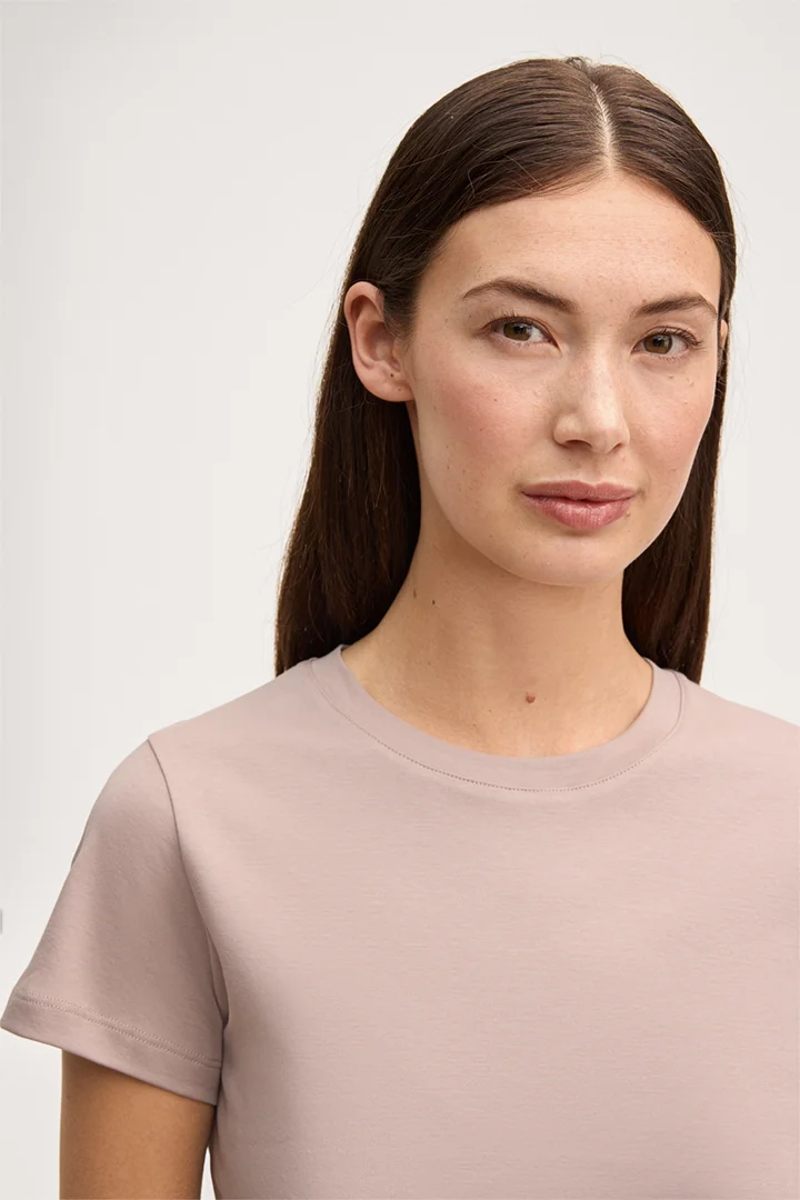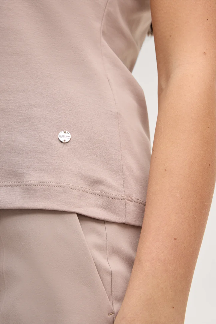 Cotton interlock T-shirt in taupe