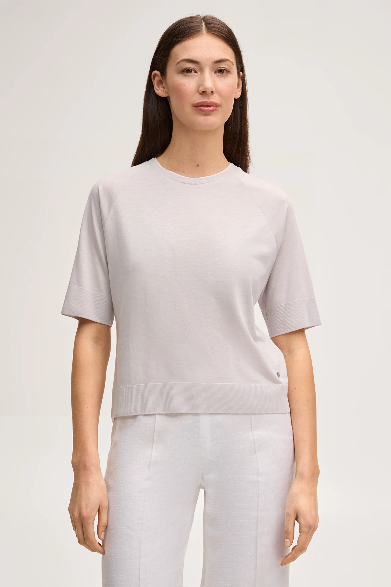 Made from lyocell and cotton, this T-shirt has a comfortable twist. Ribbed cuffs on the short raglan sleeves and hem accentuate the modern design. The refined logo gives a stylish touch. The style works just as well on its own with jeans or trousers as it does layered under blazers or an oversized open shirt.