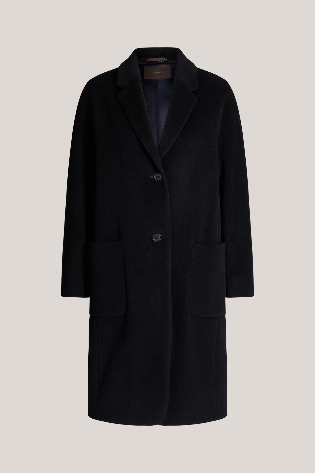 A confident classic for everyday wear during the cool autumn season: this city coat features a wool blend with an egg-shaped silhouette. Two-button fastening, a lapel collar and modern patch pockets accentuate the look.