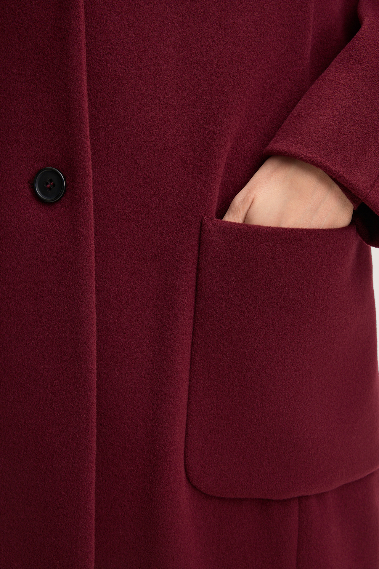 A confident classic for everyday wear during the cool autumn season: this city coat features a wool blend with an egg-shaped silhouette. Two-button fastening, a lapel collar and modern patch pockets accentuate the look.