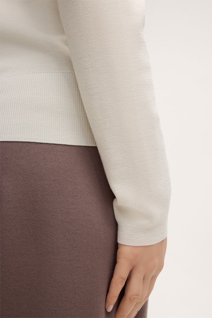 The elegant fine knit quality in virgin wool and silk combined with a soft roll neck set this long-sleeved shirt apart as a favourite item for stylish everyday looks paired with denim, fabric trousers and skirts. Fine seams accentuate the clean design, and an elasticated hem finish ensures supreme comfort.