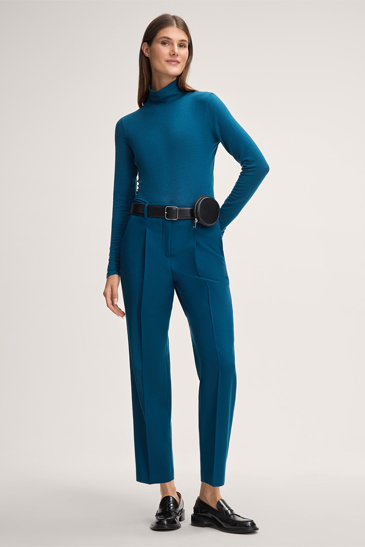 • pressed creases and waistband darts