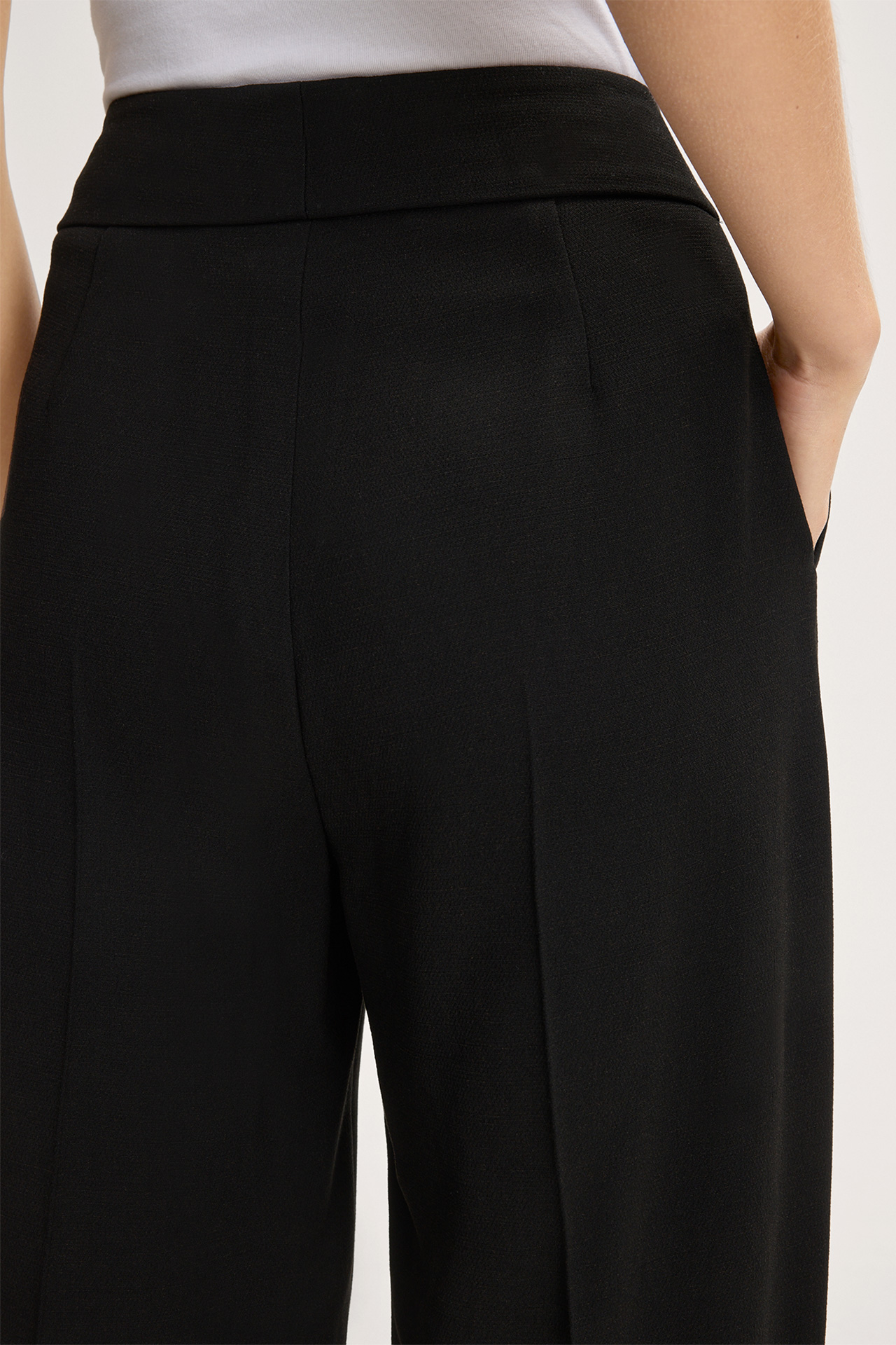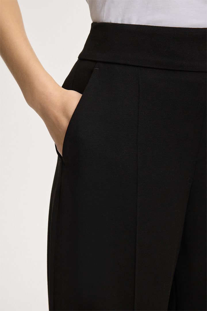 These suit trousers make a great impression with their high waistband and tapered silhouette. The minimalist design boasts a harmonious finish thanks to the seam-concealed zip, classic pressed creases and side slit pockets. Ideal for the office and formal occasions. The virgin wool viscose crêpe quality delivers outstanding comfort.